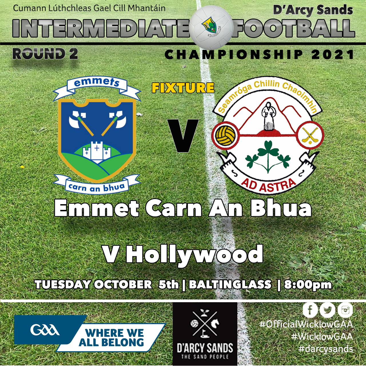 The re-fixed meeting of Carnew Emmets and Hollywood in the D’Arcy Sands IFC goes ahead tonight Tuesday, October 5th at 8:00 pm in Baltinglass.