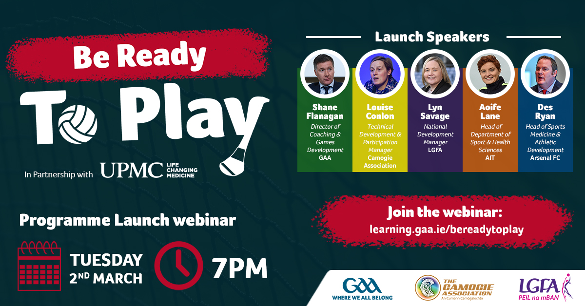 Registration commenced on March 3rd for the “Be Ready to Play” initiative through the GAA eLearning site https://learning.gaa.ie/bereadytoplay
